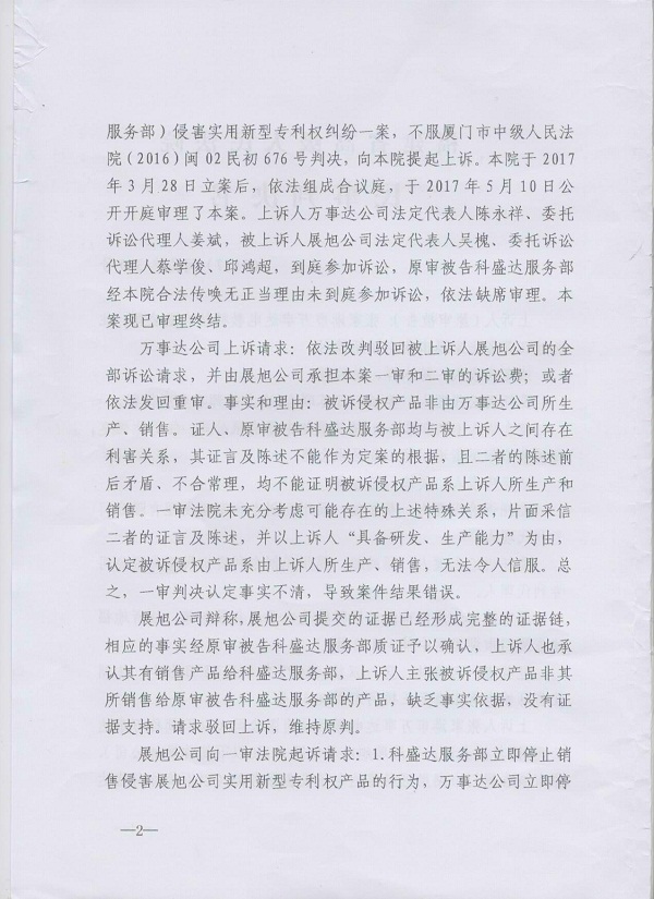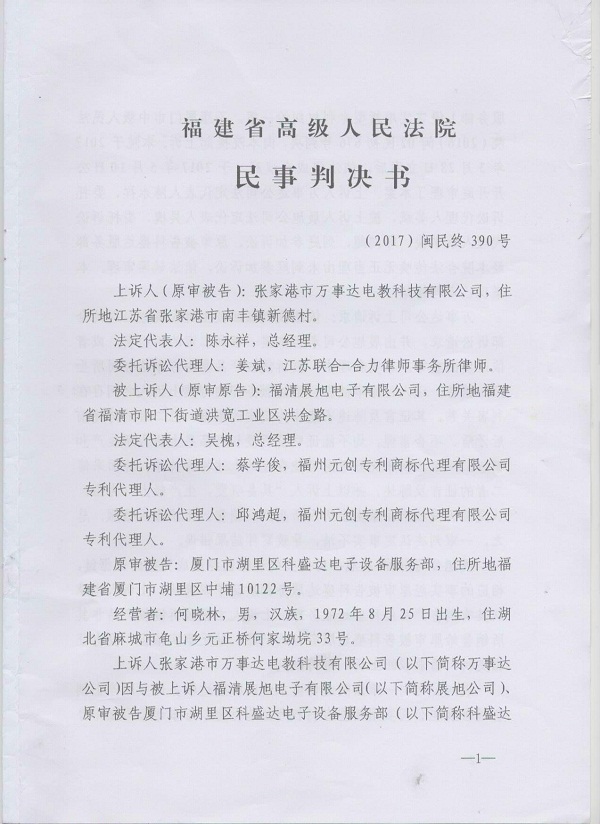 实用新型专利权纠纷——福清展旭电子有限公司(2017)闽民终390号